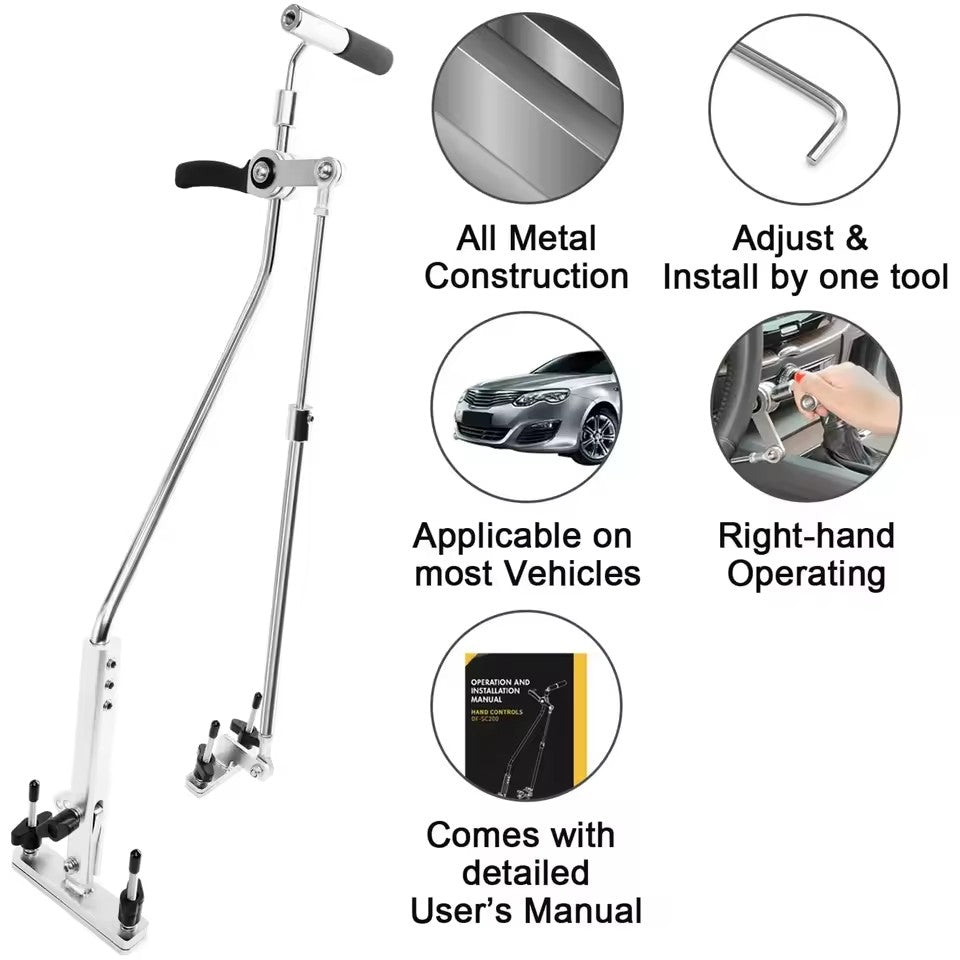 One-Hand-Control achievable: one hand control pedals through this "Hand Controls Device", the other hand control steering wheel