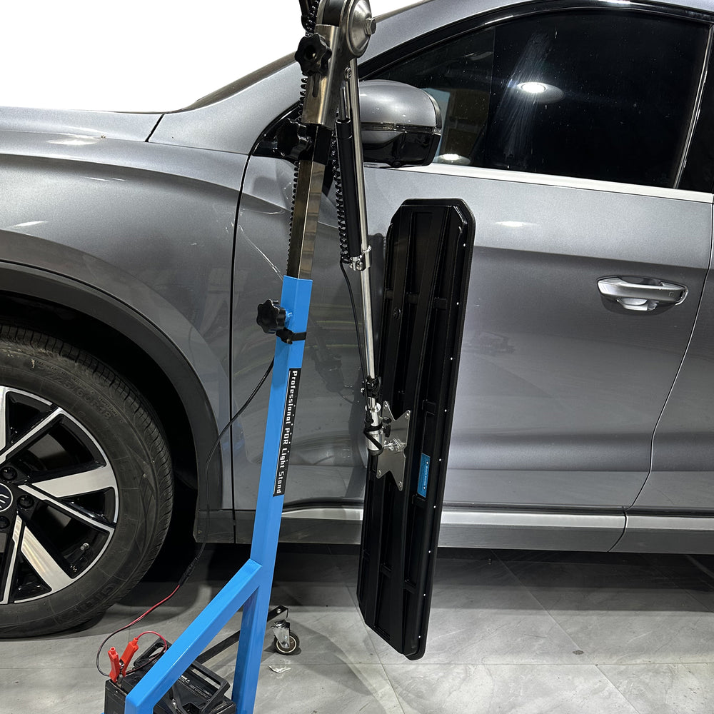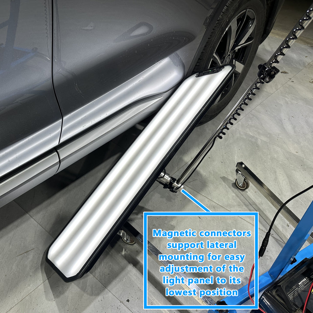 With the help of the reflection of the lamp on the top of the sheet, the placement position of the dent removal tool or the adhesive adapter can be accurately determined.Find dents/dings more easily and correctly, Very easy to control .