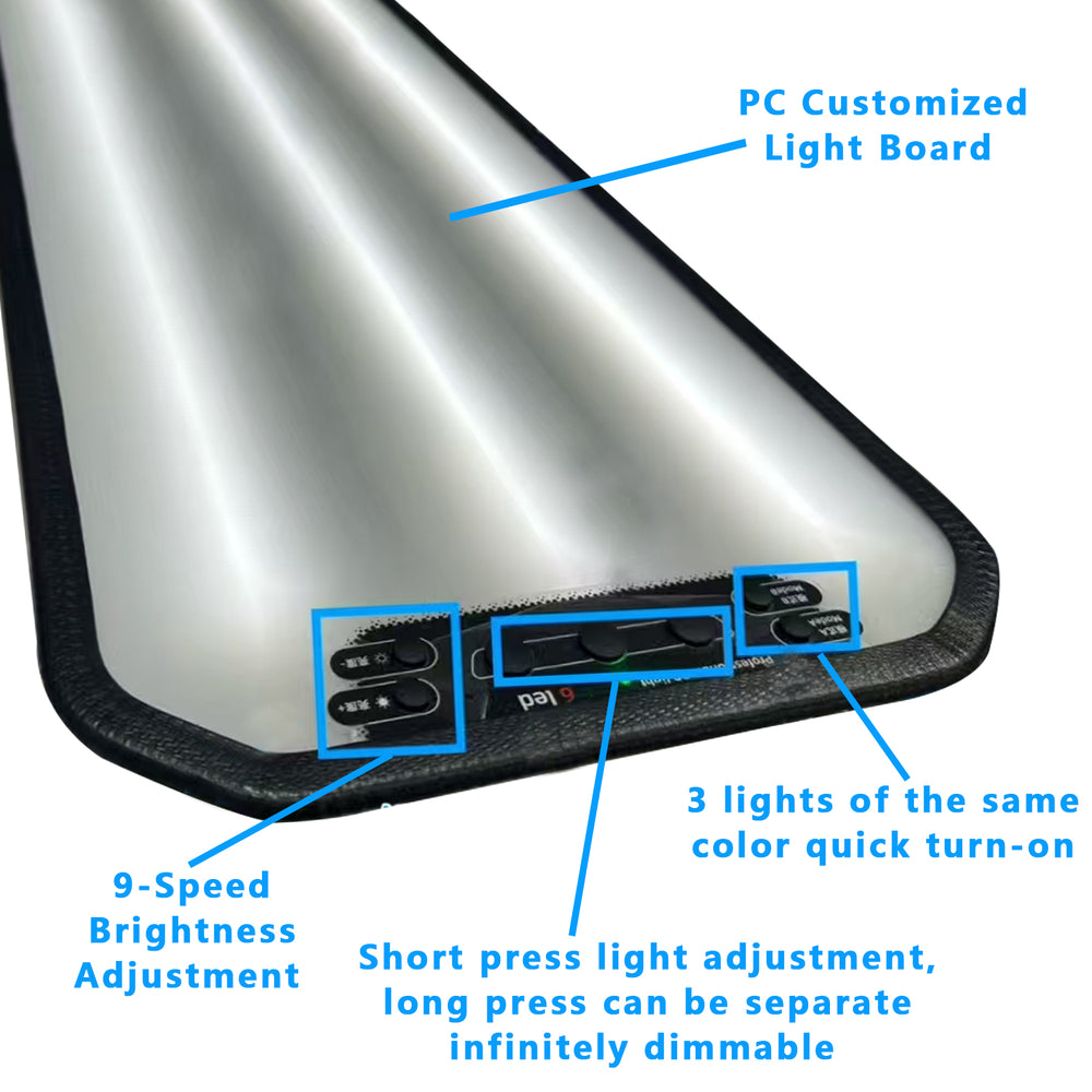 The professional PDR light with 3 LED strip area(6 strips in total), Each strip area is controlled by a corresponding button, compared to the old PDR light it has more light adjustment options to suit the light environment used.